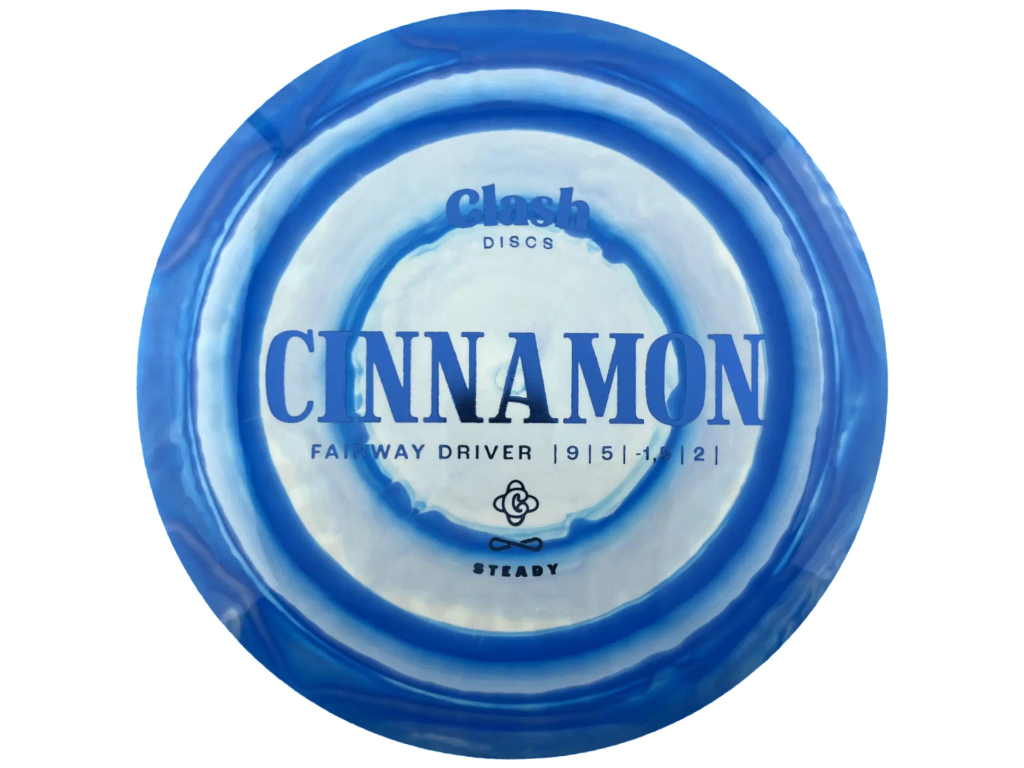 A fantastic feeling disc from Clash Discs that is more understable than the Ginger but flies longer than the Lotus. The Cinnamon has a comfy feel in the hand that can be used for a ton of shots from slight hyzer flips to anhyzers that fight out the whole flight. The Steady plastic from Clash Discs are fantastic feeling and will hold up to plenty of tree hits, if you are inclined to throw at trees;) The neutral flight of this mold makes it perfect to be your main fairway driver that you reach for over and over again. You can beat the Cinnamon in to a nice understable flyer and cycle several Cinnamon’s through your bag. Make sure you pick up a Clash Discs Steady Cinnamon today!