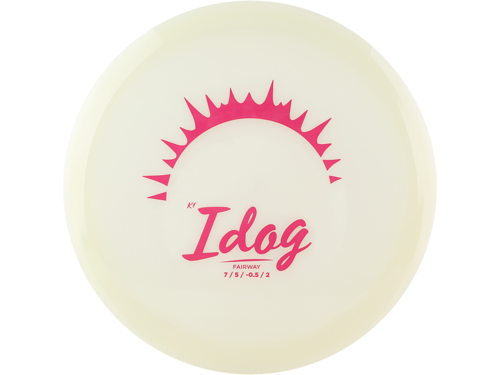 To control the fairway is to control the game and Idog is the new fairway driver in charge of this task. This versatile disc will come in handy more often than you think. Send it flat and watch it hold the line with a gentle flip, use it for tricky sidearm approaches, throw it high and trust the fade. Idog is an old uncommon Swedish word for diligence or industrious, and this is what we want it to become, a reliable workhorse a new best friend. K1 Glow is glowing in the dark after using UV lamp
