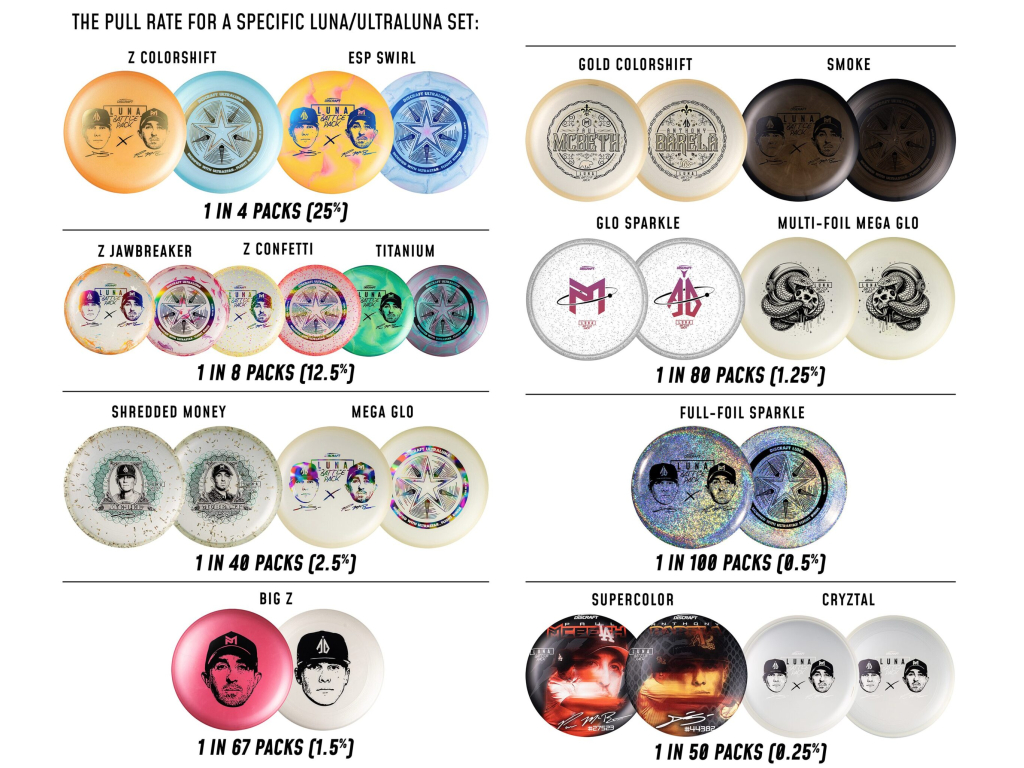 This is a unique box that contains various discs based on their rarity. The package always contains two discs.