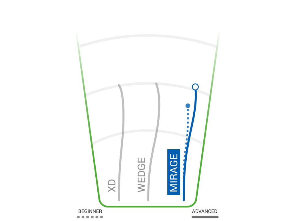 Mirage je putter s nízkým profilem, který umožňuje jednoduché vypuštění z ruky. Je nestabilní, takže se do něj nemusíš tolik opírat a stále ti poletí rovně. Vyvinut tak, aby vstřebal tvůj stres a dovolil ti kontrolovat, kam ho hodíš. Dá se použít na puttování i delší příhozy, pro začátečníka skvělý disk na všechny hody!