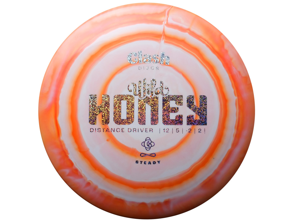 Wild Honey is an understable distance driver. Design principle behind the mold was to make it a very accessible distance driver for players with slower arm speed. With this disc you can get a beautiful long s-curving flight path without much effort. Pop it on a small hyzer and watch it glide for days!