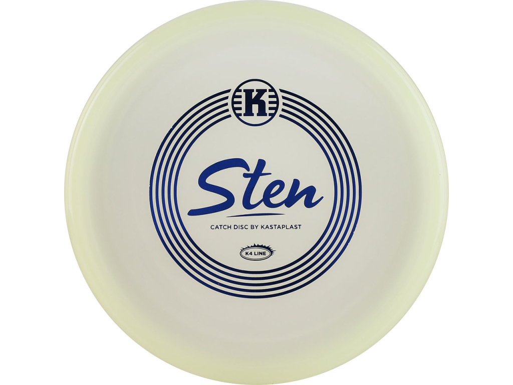 K4 je ultra pružná, ultra grippy a ultra lehká hmota od Kastaplastu. Jestli se nějaká hmota dá označit jako gumová, je to právě K4. Odolností je někde mezi K1 a K3 - na discích se udělají oděrky, ale letové vlastnosti to příliš neovlivní. Glow = po nasvícení (ideálně UV lampou) svítí ve tmě.